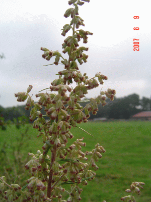 Abb.2 Oberer Teil des erblühten Blütenstands des Gemeinen Beifußes (aufgenommen in der Gemeinde 27777 Ganderkesee am 25. Juli 2006 )