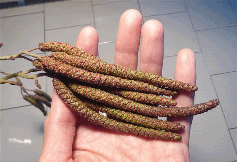 Erlenpollen bevölkern zuweilen in großen Mengen die Luft, meist deutlich mehr als Haselpollen. Lange galten sie als nicht so stark allergen wie die Haselpollen.