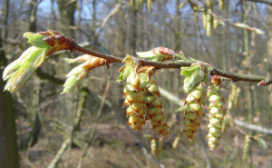 Pflanzenfamilie wie der Haselstrauch. Wie Hasel, Erle, Weide, Pappel und Birke bildet auch die Hainbuche Kätzchen aus. Sie erscheinen meist zusammen mit den Blättern. Dort wo im Wald die Hainbuche zusammen mit Rotbuchen und Eichen steht, hat der Wind noch leichtes Spiel mit dem Verwehen des Hainbuchenpollens, da Rotbuche und Eiche zu dieser Zeit noch nicht einmal mit dem Blattaustrieb begonnen haben.
