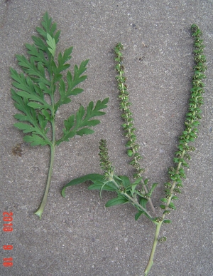 . . Ambrosie (Traubenkraut) Blatt und männlicher Blütenstand